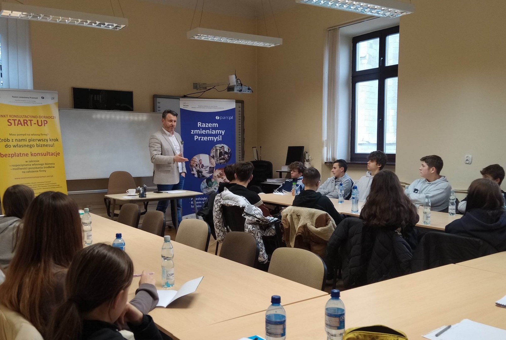 Gościem spotkania był Pan Marcin Kamola - Prezes i właściciel firmy Bricomarche Przemyśl, posiadający długoletnie doświadczenie w prowadzeniu różnych działalności gospodarczych.