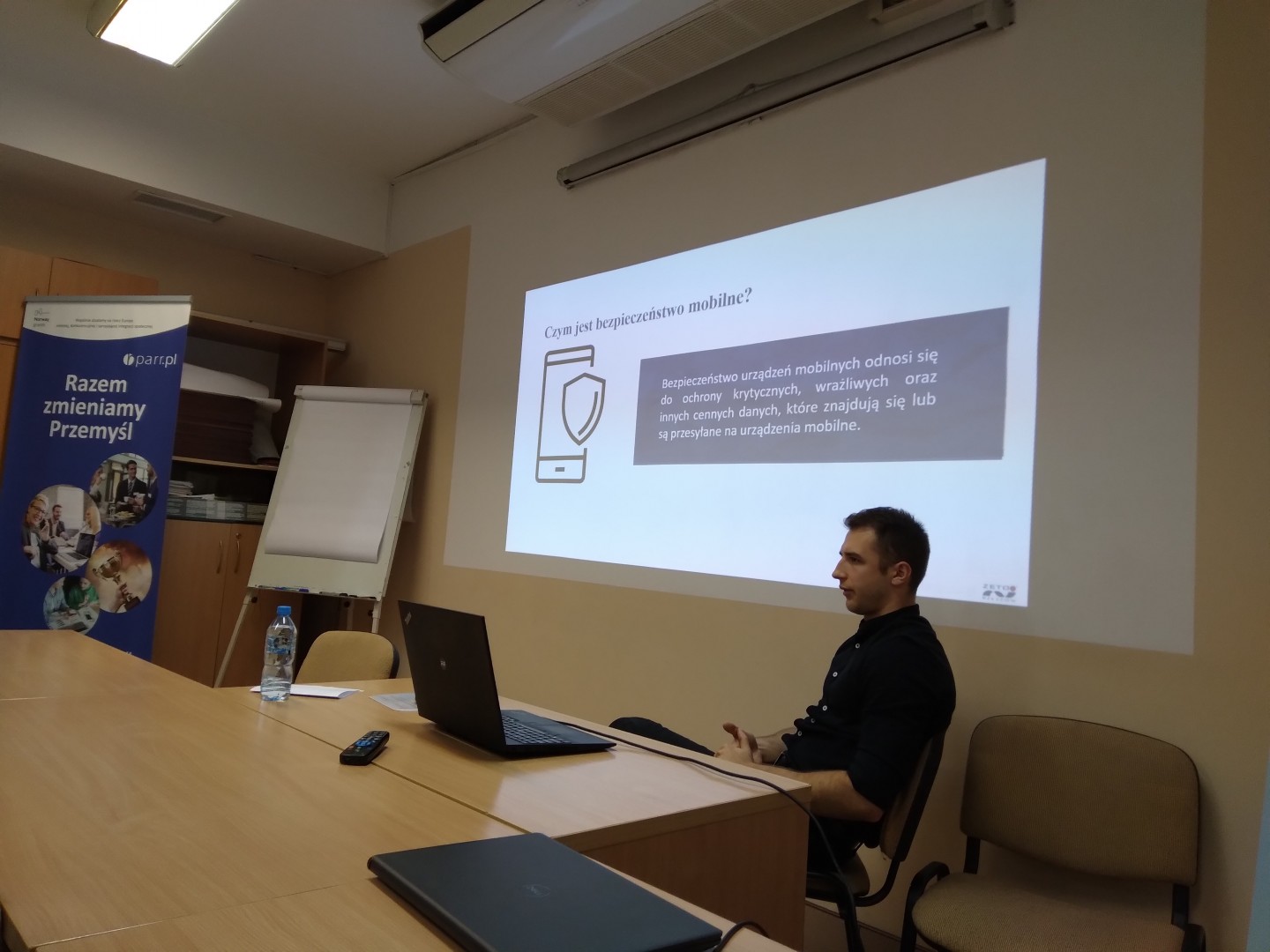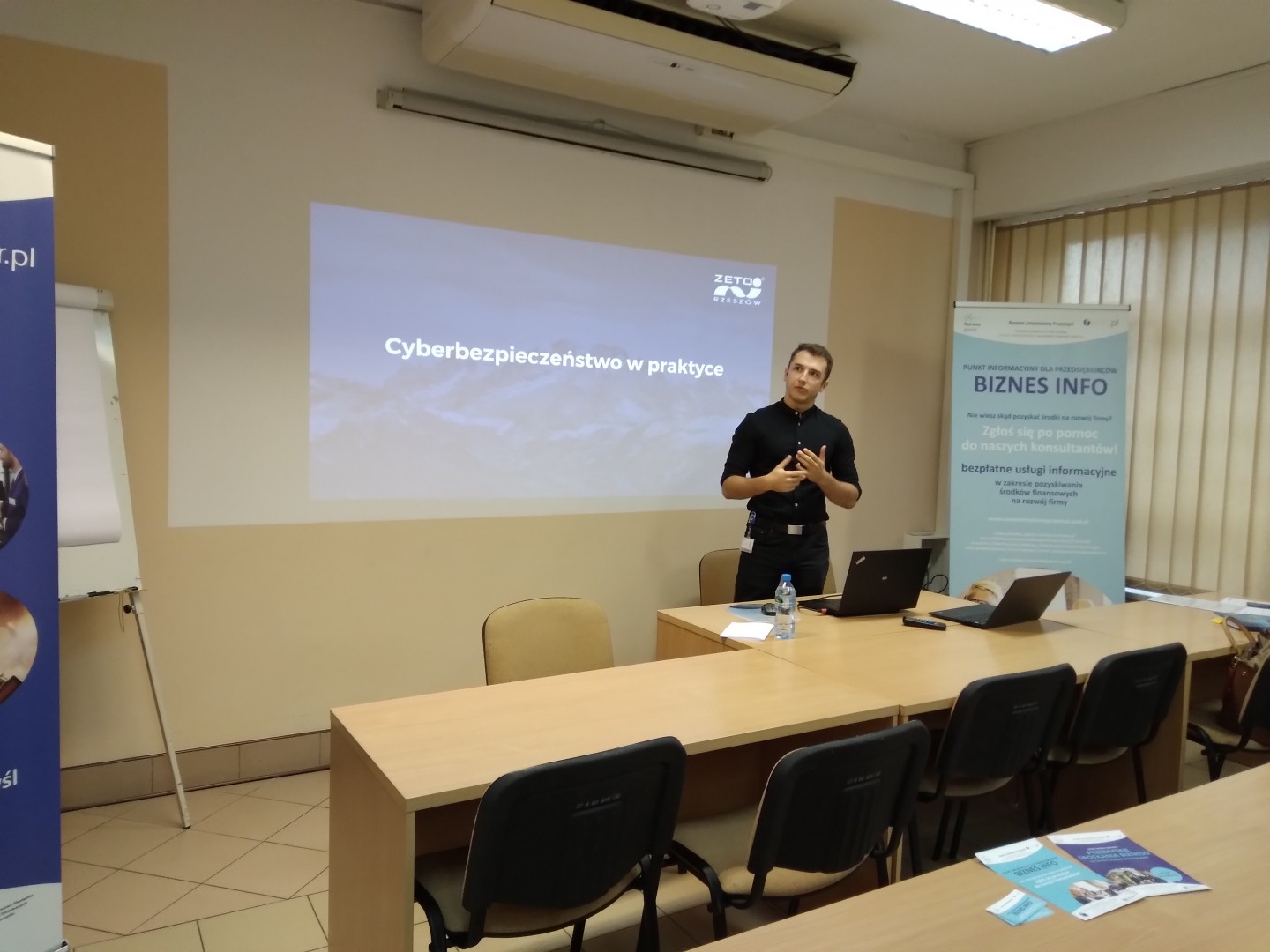 Kolejne dwa tematy: „Cyberbezpieczeńswo w praktyce” oraz „Smartfon - jako narzędzie pracy a cyberbezpieczeństwo”, omówił przedstawiciel ZETO-RZESZÓW Sp. z o.o., Pan Łukasz Kalina - Specjalista ds. Bezpieczeństwa Informacji.