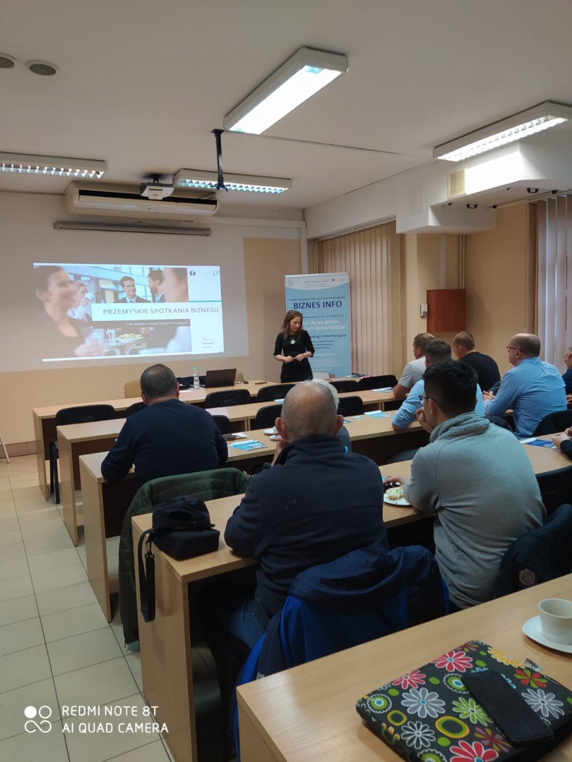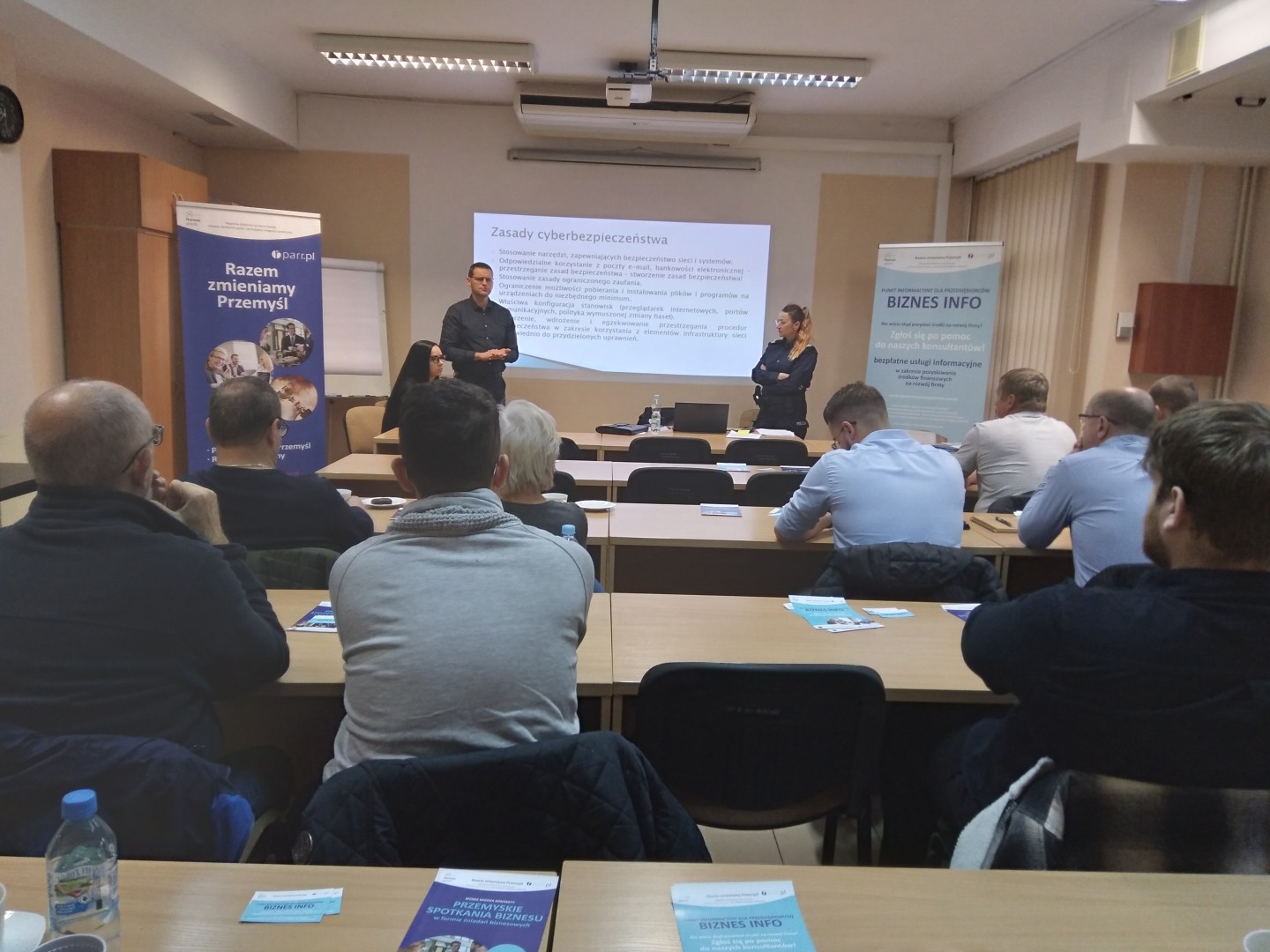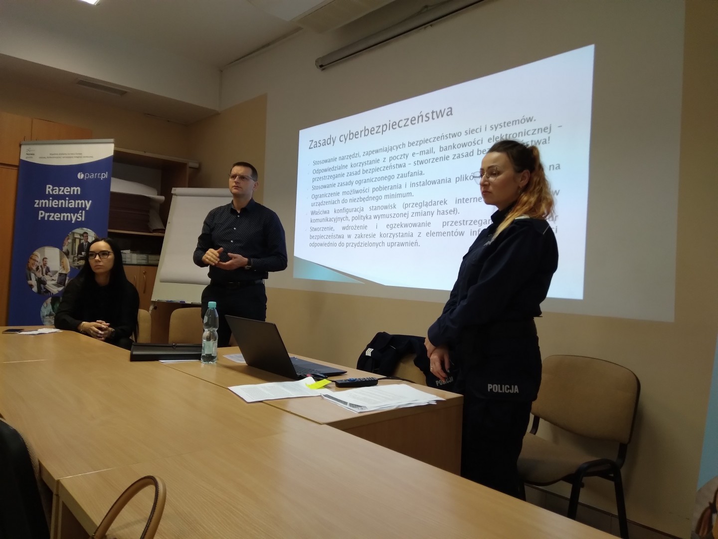 Jako pierwsza z prezentacją pt. „Cyberbezpieczeństwo w biznesie - jak wykrywać, reagować i zapobiegać cyberatakom” wystąpiła Pani Sierżant Sztabowy Alicja Tysowska-Prejzner z Komendy Miejskiej Policji w Przemyślu wraz z przedstawicielami Centralnego Biura Zwalczania Cyberprzestępczości Wydział w Rzeszowie, Panią Sierżant Sztabowy Sabiną Fąfara oraz Panem Komisarzem Andrzejem Floraz.