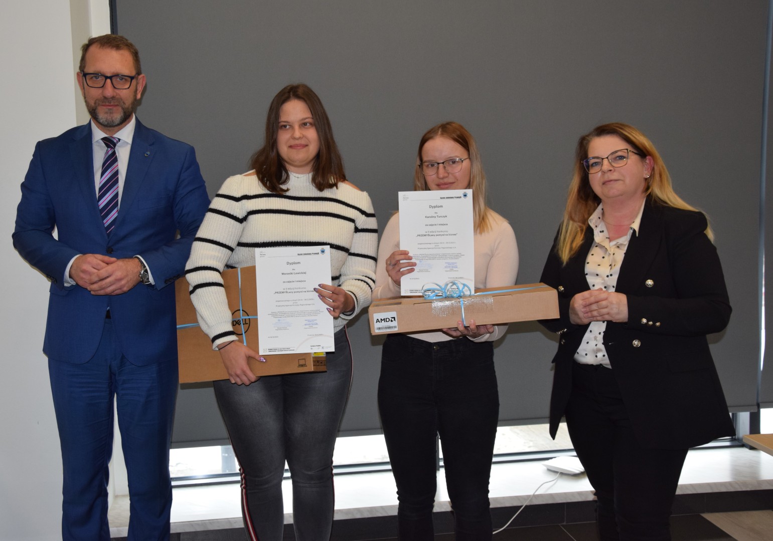 Zwycięskie zespoły otrzymały atrakcyjne nagrody (I miejsce - Laptopy, II miejsce - Tablety, III miejsce - Smartfony), które wręczył Pan Bogusław Świeży - Z-ca Prezydenta Miasta Przemyśla oraz Pani Agnieszka Muzyczka - Prezes Zarządu Przemyskiej Agencji Rozwoju Regionalne S.A.